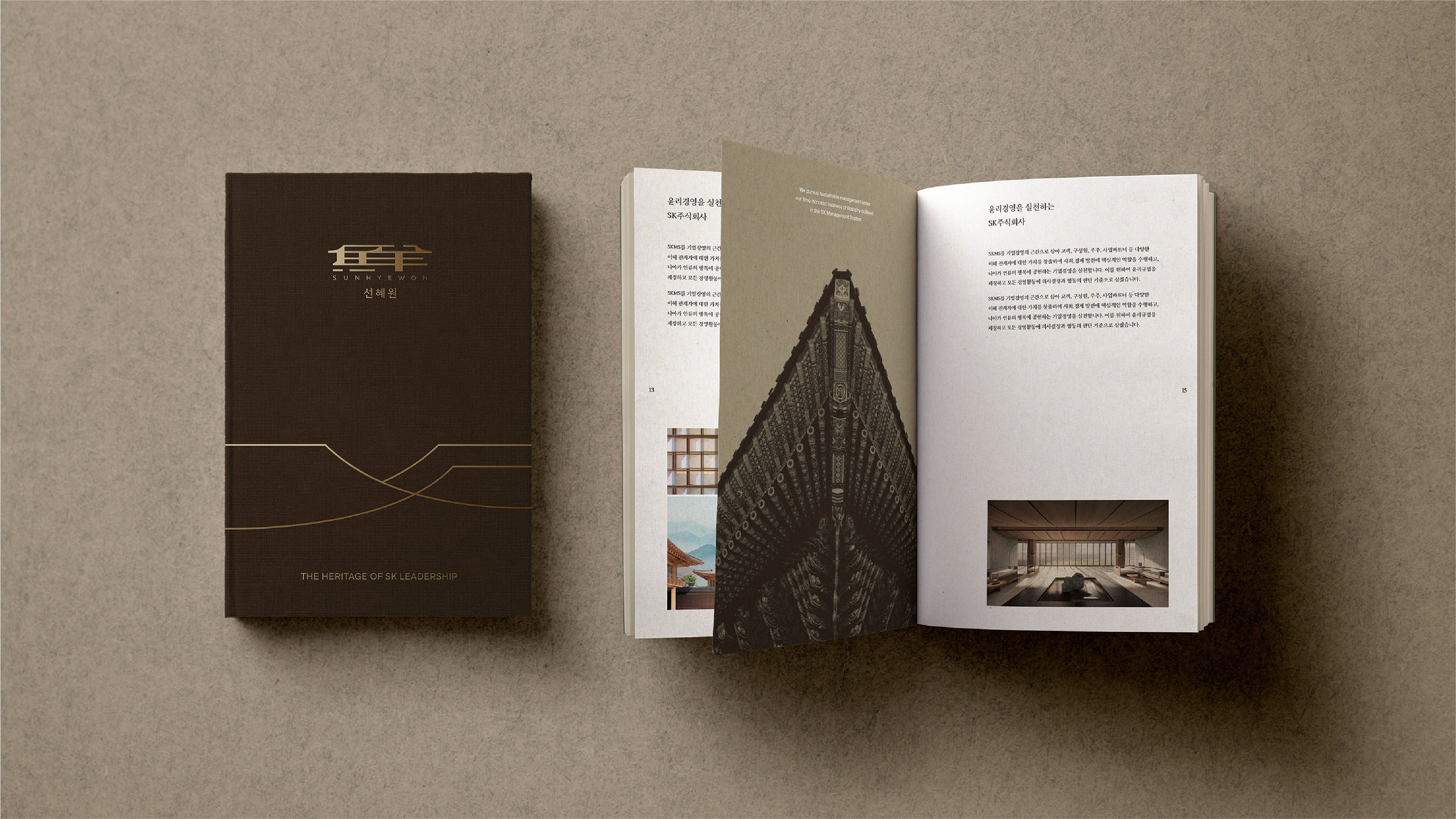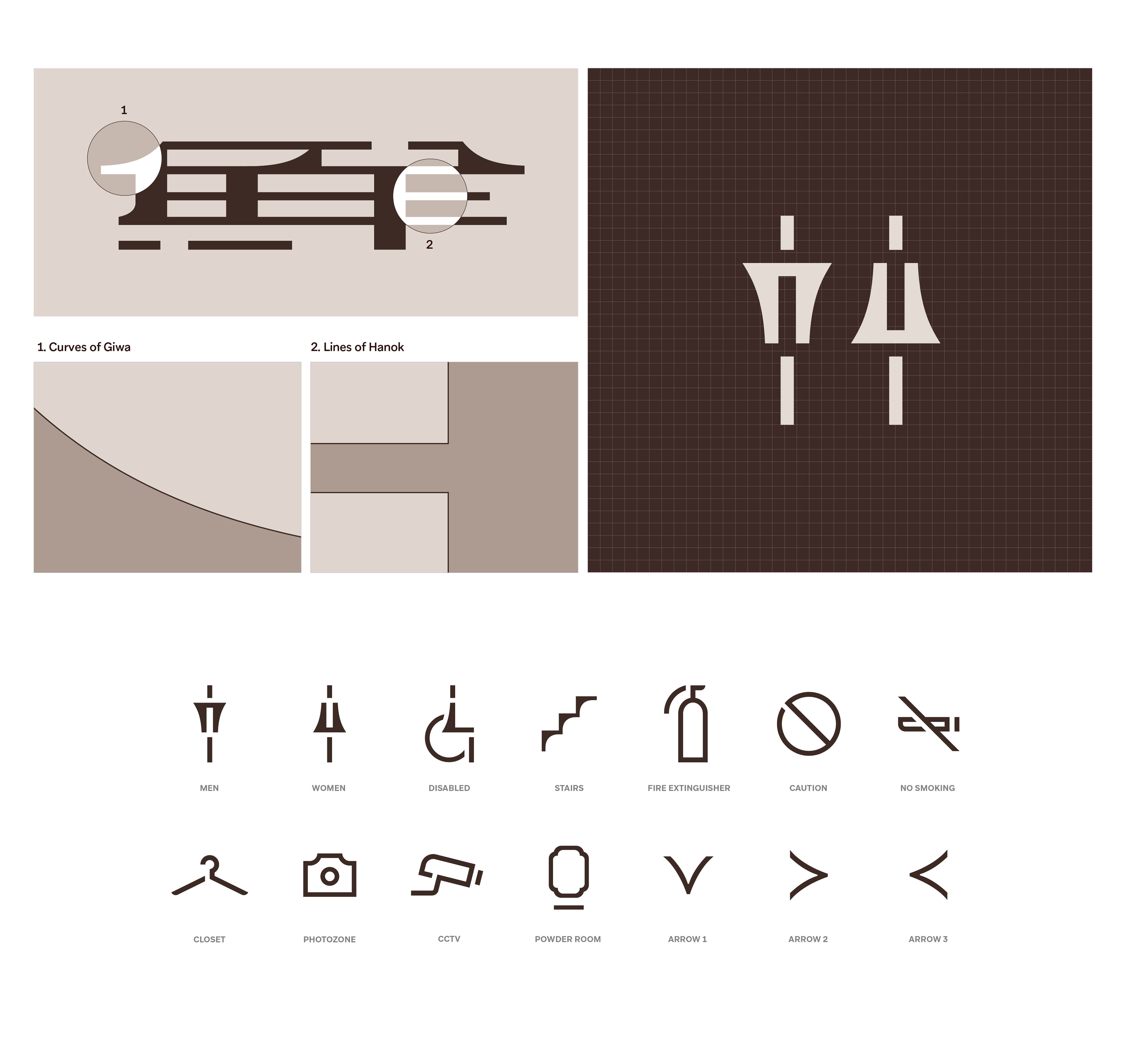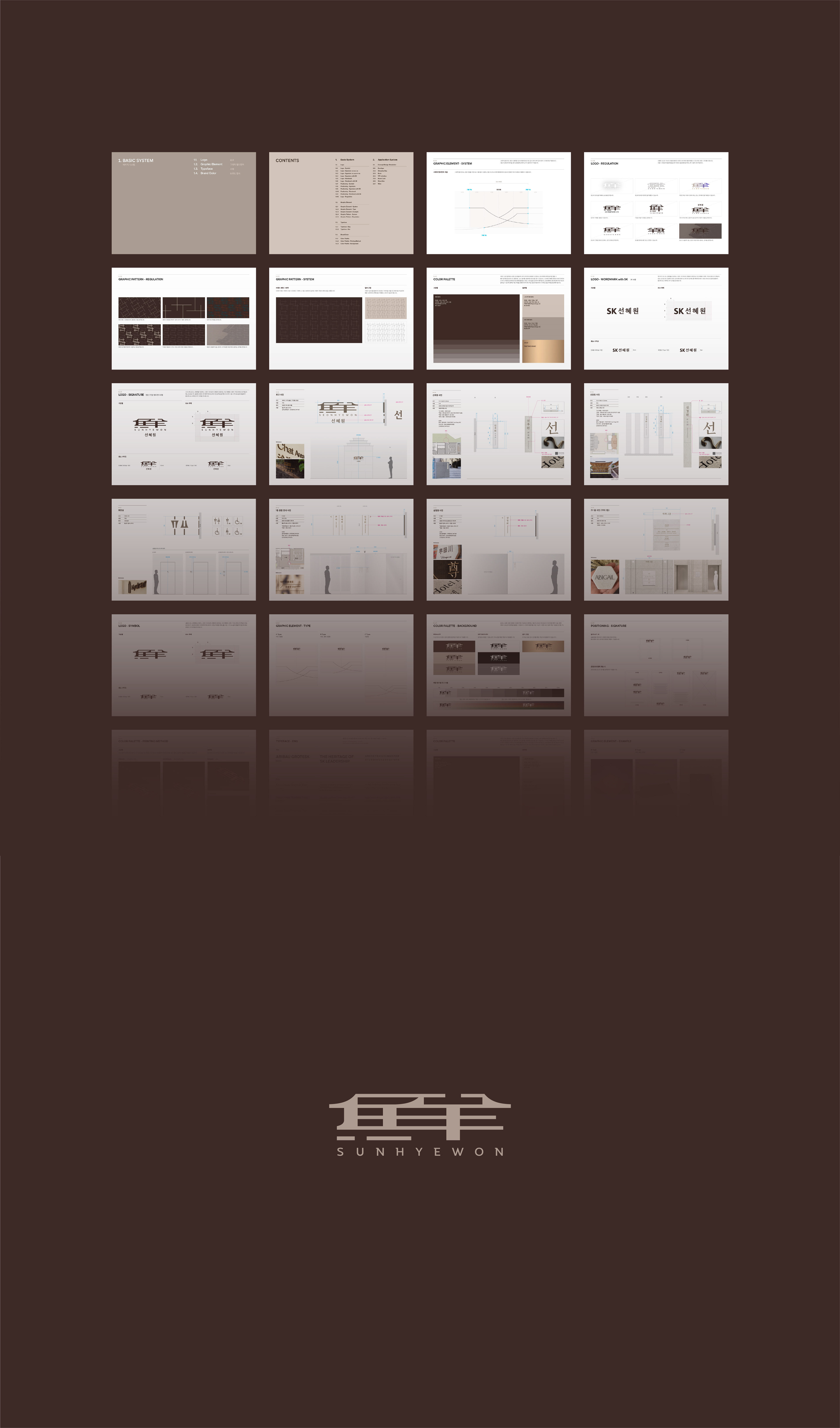 SUNHYEWON (鮮慧院), located in Samcheong-dong, Seoul, was once the residence of SK Group’s founder and has long represented the group’s history and traditions. Recently renewed as SK’s research institute, it now serves as a symbolic space that conveys the company’s philosophy and prestige. Covenant developed SUNHYEWON’s brand identity by drawing inspiration from the Chinese character “鮮 (Sun)” and the structural elements of Hanok architecture. The logo combines curved roof tiles and straight wooden pillars to symbolize harmony between tradition and modernity, while graphic patterns reinterpret Hanok forms with refined linear repetition. The signage system takes cues from the vertical script of traditional Korean books, creating a vertical rhythm, and uses materials such as stone, copper, and wood to reflect Hanok construction, adding depth and authenticity to the spatial experience. Together, these elements shape an identity that reflects SK’s heritage and aspirations with elegance and modern sensibility.